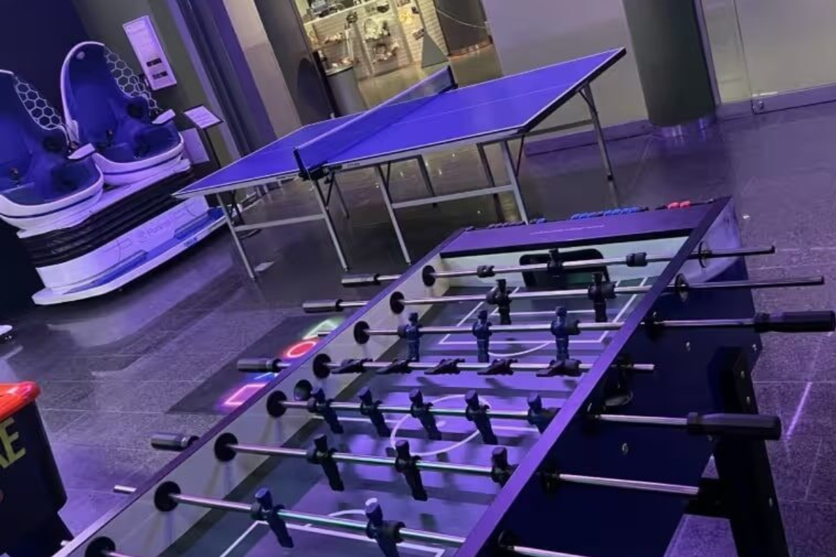 Discover our state-of-the-art VR machines, which provide unforgettable experiences in the Q8 Sportslounge. Grab your friends or come alone and plunge into unique, thrilling gaming worlds that will challenge and excite your senses.Whether it’s an exciting duel at the air hockey table, or a challenging match at the foosball table – it never gets boring here. Come by and find your new favorite activity!